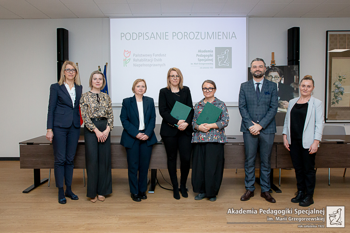W dniu 15 stycznia 2025 r. w siedzibie Akademii Pedagogiki Specjalnej im. Marii Grzegorzewskiej podpisano porozumienie między APS i Państwowym Funduszem Rehabilitacji Osób Niepełnosprawnych.