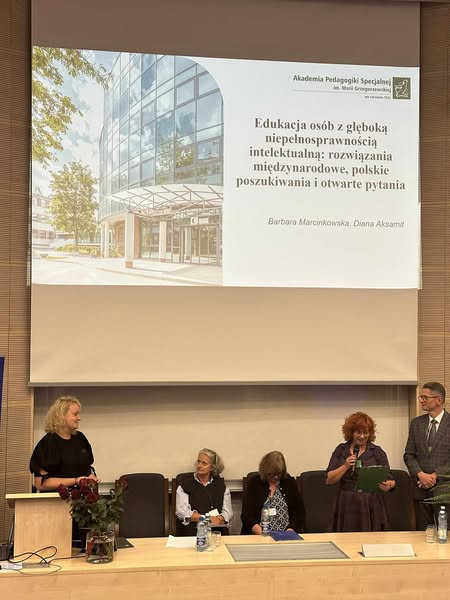 Prof. Diana Aksamit, Dyrektor Instytutu Pedagogiki Specjalnej – współautorka referatu przygotowanego z Prof. Barbarą Marcinkowską, Rektor APS, pt. „Edukacja osób z głęboką niepełnosprawnością intelektualną: rozwiązania międzynarodowe, polskie poszukiwania i otwarte pytania”,