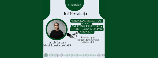 W szóstym odcinku „InTEArakcji” studentki Koła Naukowego TEA rozmawiają z Rektor APS, dr hab. Barbarą Marcinkowską, prof. APS, o sytuacji osób z głęboką niepełnosprawnością intelektualną
