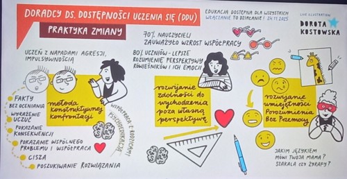 Wydarzenie zgromadziło kilkuset uczestników stacjonarnie oraz ponad tysiąc osób online, stając się przestrzenią do rozmów o tym, jak budować edukację naprawdę dostępną i włączającą. W programie znalazły się inspirujące wystąpienia, panel o wsparciu psychologiczno-pedagogicznym oraz sesje prezentujące realne interwencje i narzędzia wdrażane w polskich szkołach.